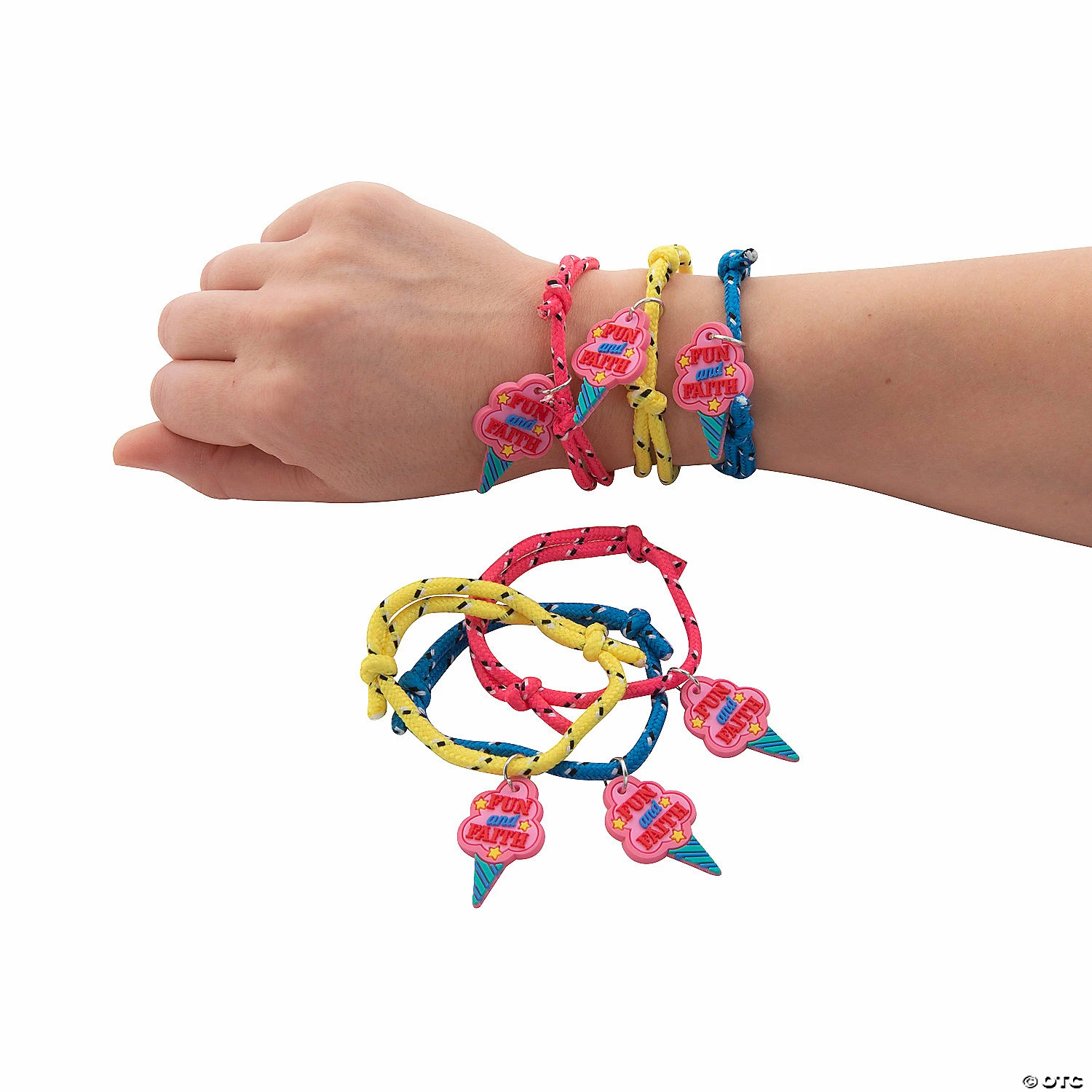 If you’re looking for fun giveaways for a church carnival, or a faith-filled party theme, these bracelets are the perfect pick! Each bracelet features a sweet treat charm that has “fun and faith” printed on it. Nylon with a rubber charm. (2 dozen per unit) Adjustable up to 13″ circ. Β© OTC