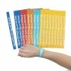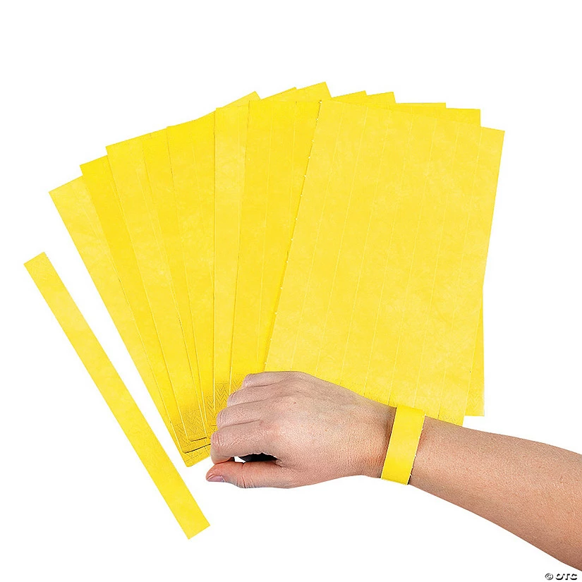 These self-adhesive wristbands are ideal for admission to sporting events, school carnivals, concerts, parties, field trips, proms and public parties. Wear them to help identify your group in a crowd, or use them for re-entry into your event. Includes 10 sheets of perforated paper tickets. (100 tickets per unit) 10″
